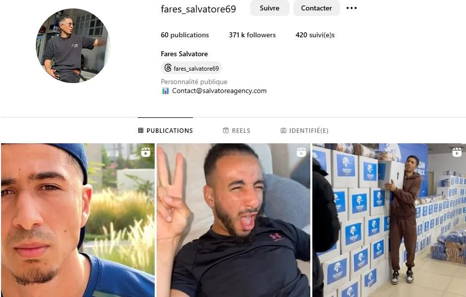 is a French influencer known for his humorous videos. He stands out for his quirky sense of humor and eccentric characters, which has earned him great popularity with young people. One year ago, Fares Salvatore completely rethought his life, adopting a much more serious attitude, taking up sport and getting involved with charities, a move that has been greatly appreciated by his fans.